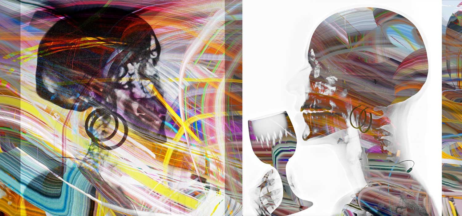 An increasingly complex social processes like the dissolution of space and time in technical communication processes, when, for example, a person talks to another person who is in a completely different place. For the “accelerated person” it is getting difficult to distinguish between reality and virtual reality. The dividing lines blur. Every look at the environment is overlaid by endless layers of virtual image snippets. The image on our mind, that is, the image behind our eyes, builds up completely different to the image of a camera. It is composed of snapshots of different situations and times, which overlay the retina‘s perception with moods and feelings, creating a very complex but always subjective image.