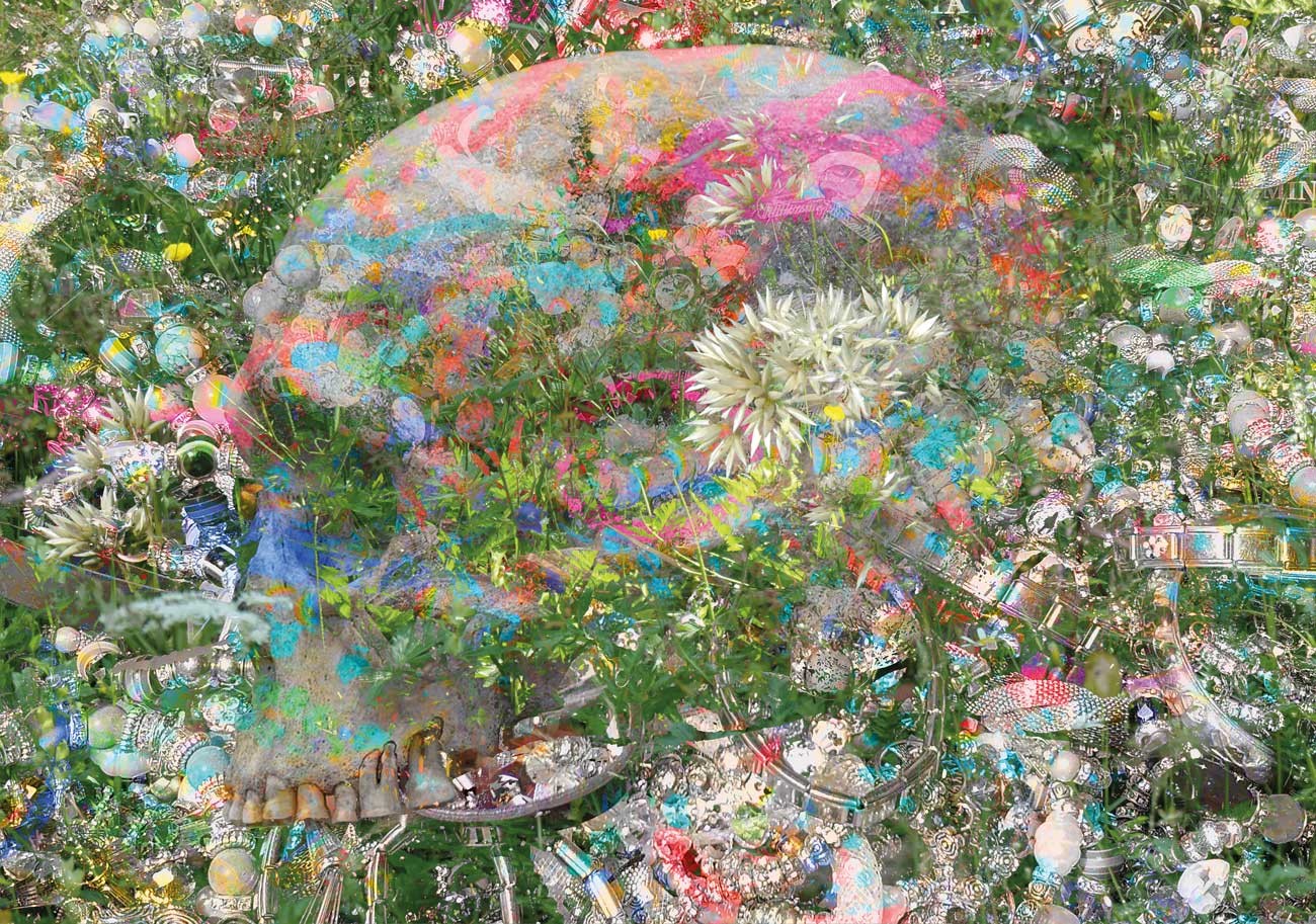 Due to technical possibilities of digital printing on various materials in unlimited sizes I can create large scale installations in buildings. These „accelerated worlds“ are based on images of daily life such as consumer products, environments, people, plants. Compositions of various details being processed to digital paintings they unfold to worlds of their own, which cannot easily be deciphered and decoded at first sight.